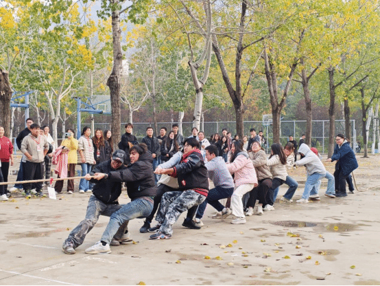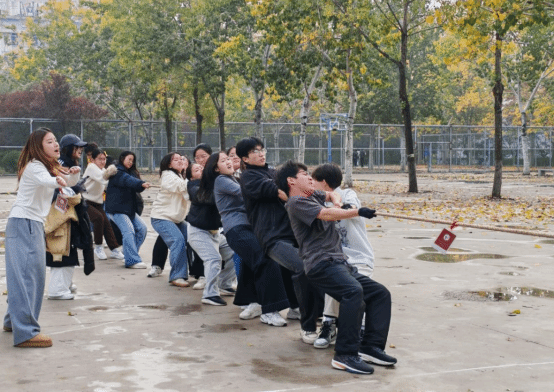 于南苑篮球场举办2025年拔河比赛。学院23级、24级、25级9个班级的队伍参赛,现场氛围热烈非凡。